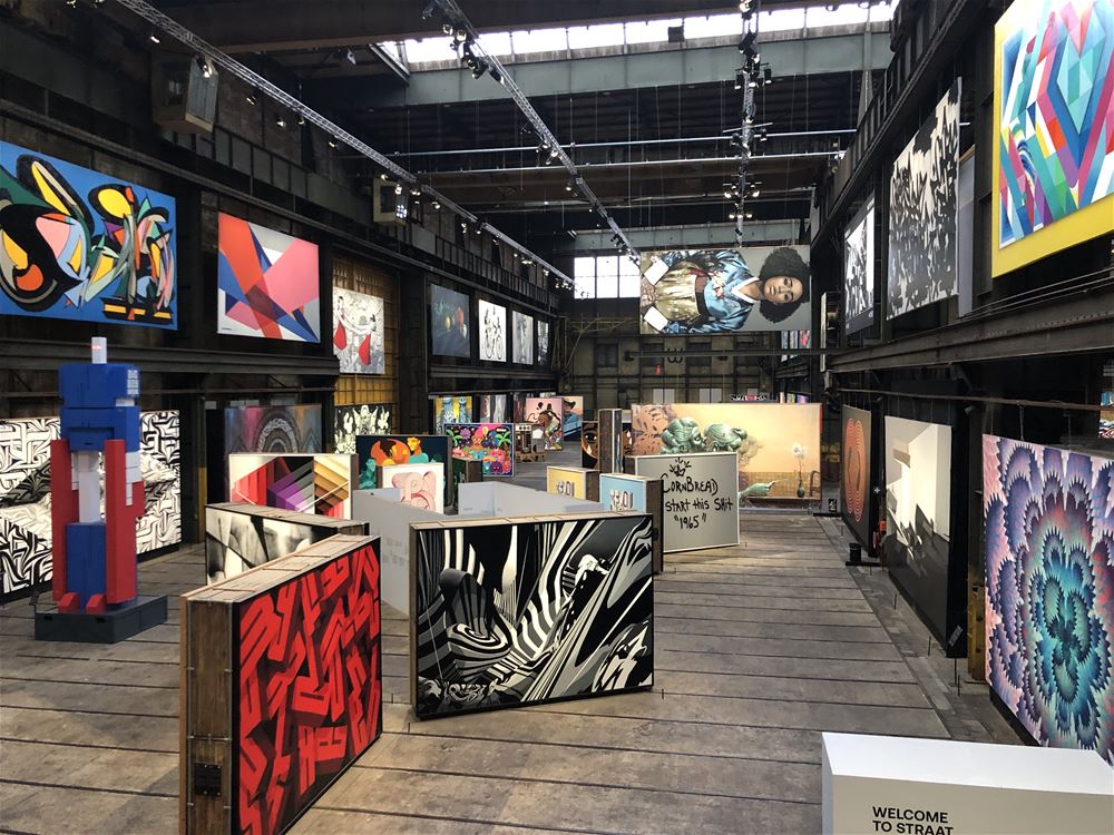 De eerste dag bezochten docenten Dominik Martin en Liene Bouwen samen met hun cursisten de NDSM Werf. In deze Loods is één van de grootste, oudste en bekendste kunstenaars-broedplaatsen gevestigd met ongeveer 85 studio’s waar kunstenaars, designers, creatievelingen en ambachtslieden hun ei kwijt kunnen. Ze bezochten er de expo in NDSM Fuse en STRAAT, het museum voor streetart en graffiti.