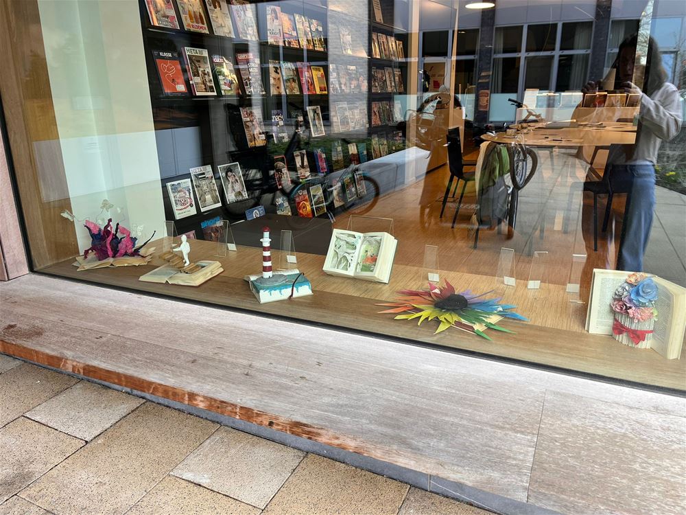 De leerlingen van onze jongerenateliers stellen daarom hun creaties tentoon in deze bibliotheken: