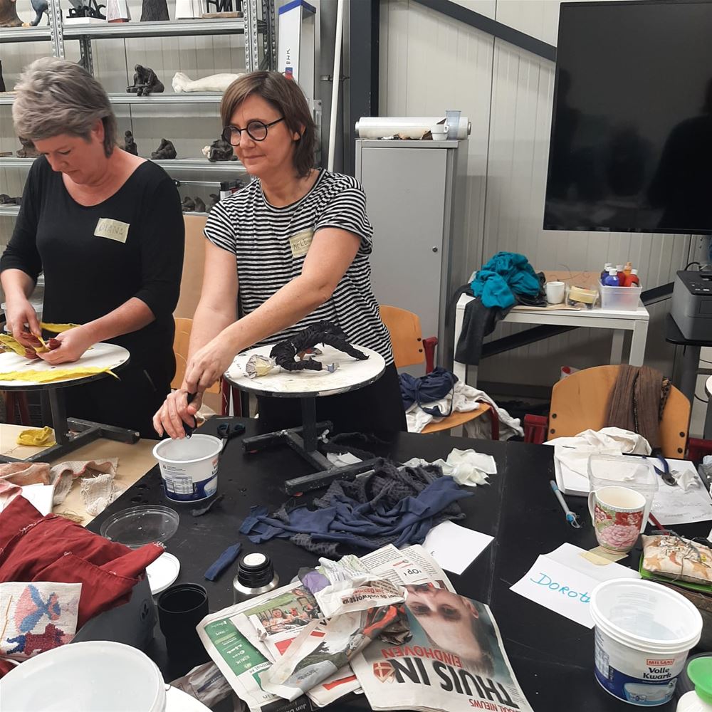 Beeldend kunstenaar Caren van Herwaarden was op zaterdag 28 februari te gast in Kunstacademie Noord-Limburg. Tijdens twee volzette workshops met de titel "Stof tot Herinnering" begeleidde Caren zowel docenten als cursisten van onze academie in het maken van een persoonlijk herinneringsbeeld.