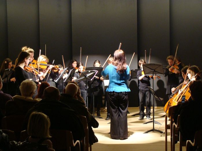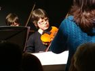 De eerste die speelden waren de strijkers, en die waren met ongeveer 20 mensen denk ik. Alle vier de strijkers waren er: de viool, de altviool, de cello en de contrabas. Na de strijkers kwam er een meisje met een harp en daarna was er een klein toneeltje van Woord. Na het toneeltje waren er een paar gitaren en tot slot nog een klein afsluitingstoneeltje.