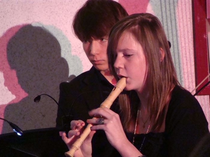 Hier begon het met een piano, dan een klavecimbel, daarna een kwartet van blokfluiten en wat ik best raar vond was dat ze opeens van fluit veranderden. Hierna kwam een optredentje van Woord, dan nog een orgel, als voorlaatste een cello en 2 hobo’s en tot slot nog een toneeltje.