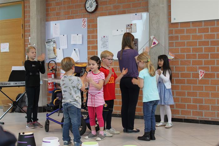 De muzische lessen van de KinderAcademie uit de Noord-Limburgse Kunstacademie werden in elke afdeling afgesloten met een kort toonmoment. Vrolijke liederen, begeleid op kleurige trommels of klankstaven, een vlot dansje en een kort verhaal werden spontaan aangekondigd door de kinderen zelf. Dit alles kon rekenen op een enthousiast applaus van het publiek!