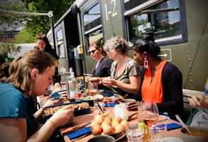 's Middags kon er even van het mooie weer genoten worden tijdens een hapje aan eetbar "De Wagon".