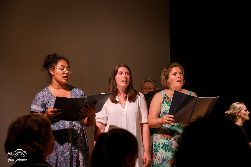 Aan het einde van het concert voegden de cursisten uit de klassen muzikale vorming voor volwassenen zich bij hen en sloten af met het toepasselijke “Join the song”.