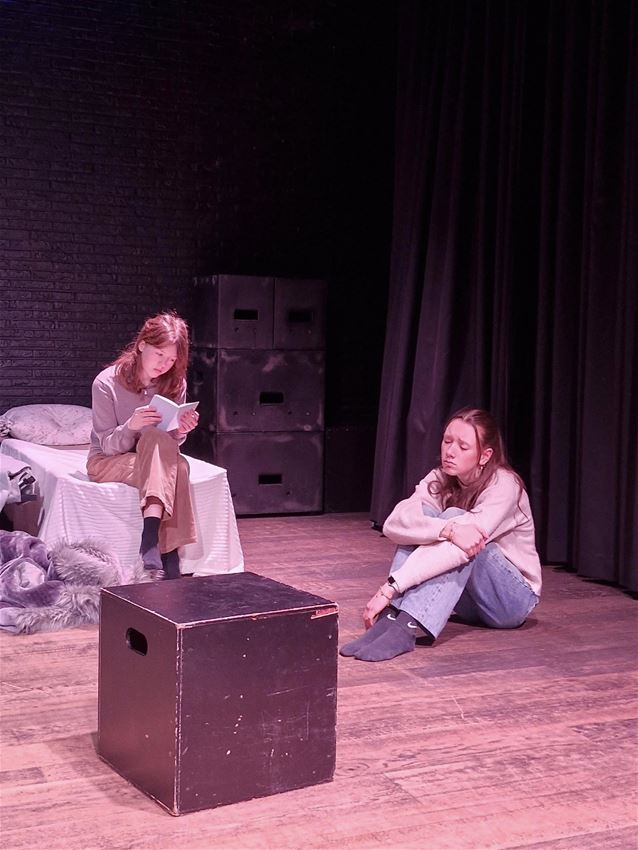 De tekst van het stuk, mede geschreven door docente Lize Theunis, vertrekt van een intens gegeven: ontvoerde jongeren opgesloten in een bunker.