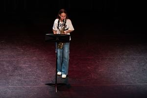 Het publiek werd betoverd door koninklijk klinkende koperblazers, saxofoons die fluisterden als geheime hofadviseurs, violen die zuchtten als een dramatische prinses en gitaren die misschien wel rebelleerden tegen het koningshuis. En dan was er nog piano, de leerlingen muzikale vorming én de kunstenmixers: het leek alsof de hofnar, de troubadour en de koning samen op het podium stonden!