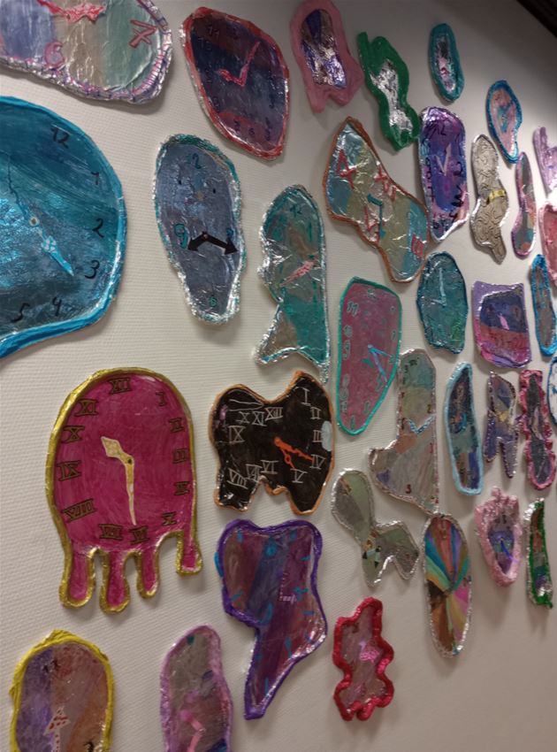 De Jeugdboekenmaand (1-31 maart) loopt helaas op zijn laatste benen maar hoe heerlijk was het om de vele kunstwerkjes uit onze kinderateliers in de bibliotheken van Noord-Limburg tentoongesteld te zien. Onze leerlingen lieten zich inspireren door het thema van de Jeugdboekenmaand, nl. tijd. Dat resulteerde in al dan niet glijdende uurwerken, snelle en trage slakken, portretten, stillevens, striptekeningen en meer fraais. Wie ze graag nog in levende lijve wil zien, moet snel zijn.