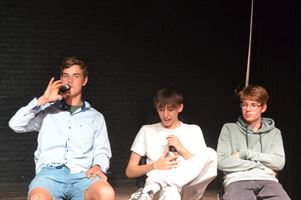 De avond ging van start met de voorstelling van de afdeling Oudsbergen. Drie leerlingen kozen voor het indringende familiedrama Lijk van Esther Gerritsen. Toen één van hen onverwacht afhaakte kort voor de voorstelling, dreigde het stuk letterlijk in het water te vallen. Maar de overgebleven actrices zetten door. Met de hulp van een leerlinge uit de derde graad, die dapper inviel en haar rol voorlas op scène, brachten ze het verhaal toch tot leven. En hoe! De spanning was voelbaar, de personages levensecht en de geladen sfeer – rond een mysterieus graf in de achtertuin – werd met overtuiging neergezet. Het publiek werd meegesleurd in een verhaal vol vragen en onderhuidse dreiging. Een moedige en sterke prestatie die indruk maakte.