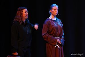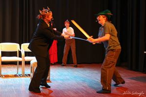 In het verhaal werd deze unieke repetitie de vuurdoop voor de volledige bezetting van de voorstelling, waarin ook het publiek werd ingeschakeld om te figureren als bomen, paarden of koninklijke boden.