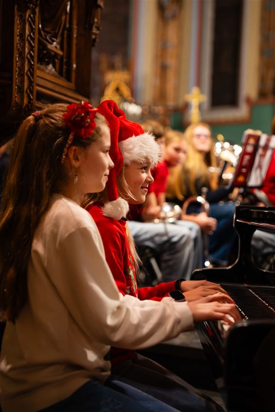 - Snaarinstrumenten: Nathan La Fazia (viool) en het duo Sophia Benjdya en Natalia Lorbiecka (vioolduet) brachten de fijngevoeligheid van de strijkers naar voren, terwijl gitaartalenten Lenke Jansen, Marit Van Hertem en Daan Brouckaert een sfeervol We Wish You A Merry Christmas tokkelden.
