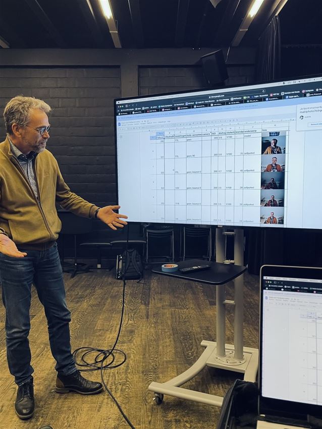 Elke les is opgebouwd uit praktijk - pauze - praktijk - bespreking. Om de zoveel weken vindt er een groepsbespreking plaats waarbij een ruime selectie beelden A4 worden uitgeprint, besproken en geselecteerd. Wat valt op, wat sluit aan bij elkaar, wat zijn werkpunten ...