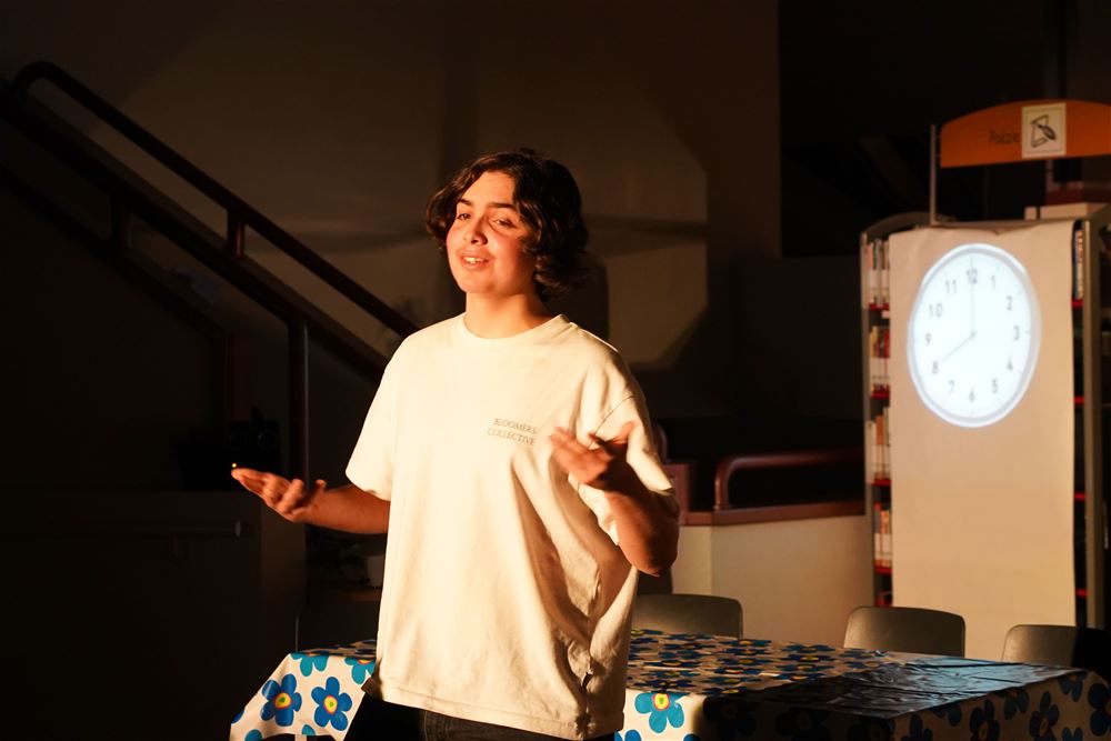 In Lommel luidden enkele leerlingen theater uit de klas van Karla Deroost samen met leerlingen piano uit de klas van Bran Mondelaers op donderdag 29 januari de poëzieweek in met een stemmige nocturne in de bib.