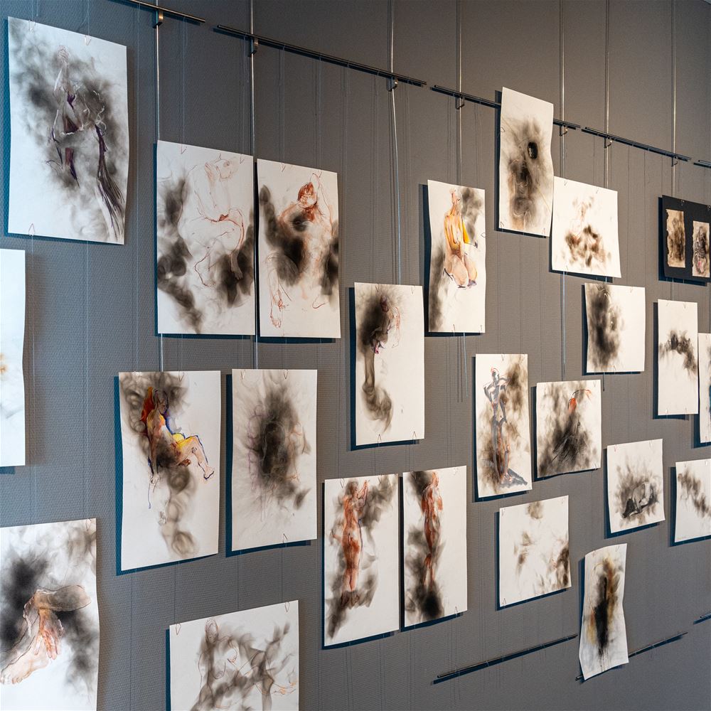 In deze installatie vormen flakkerende roetstreken de verbindende factor tussen de werken. Stevige vellen papier werden dicht bij de vlam van een grote kaars gehouden, waardoor een spel van schaduw en toeval op het blad ontstond. Ieder ging vervolgens verder met een eigen proces: roet werd deels weggehaald, accenten werden toegevoegd, loslaten en experiment stonden centraal.