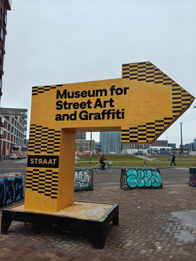 De eerste dag bezochten docenten Dominik Martin en Liene Bouwen samen met hun cursisten de NDSM Werf. In deze Loods is één van de grootste, oudste en bekendste kunstenaars-broedplaatsen gevestigd met ongeveer 85 studio’s waar kunstenaars, designers, creatievelingen en ambachtslieden hun ei kwijt kunnen. Ze bezochten er de expo in NDSM Fuse en STRAAT, het museum voor streetart en graffiti.