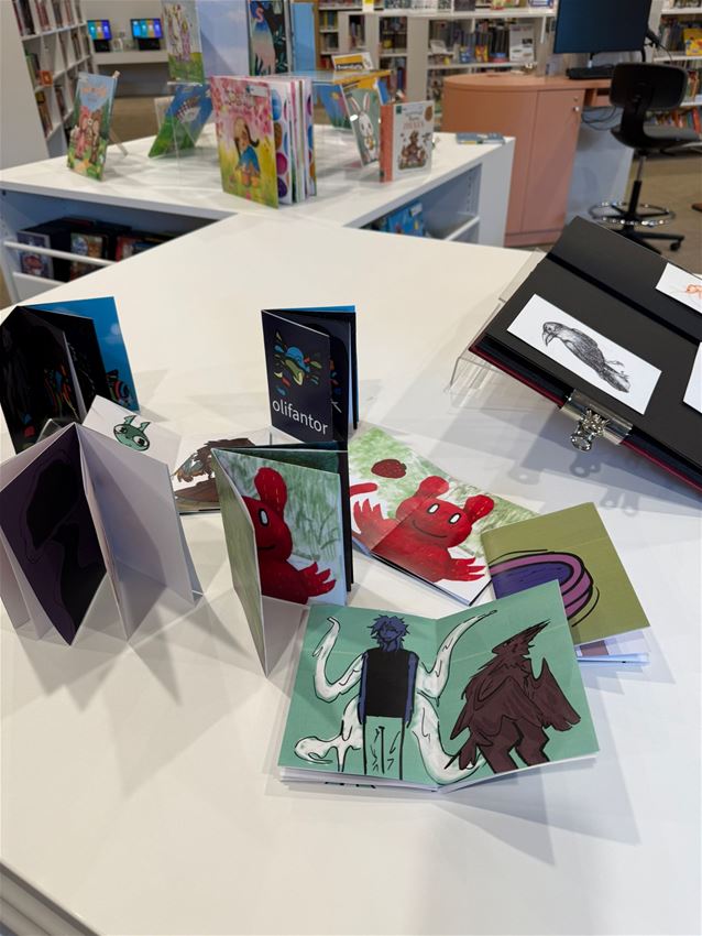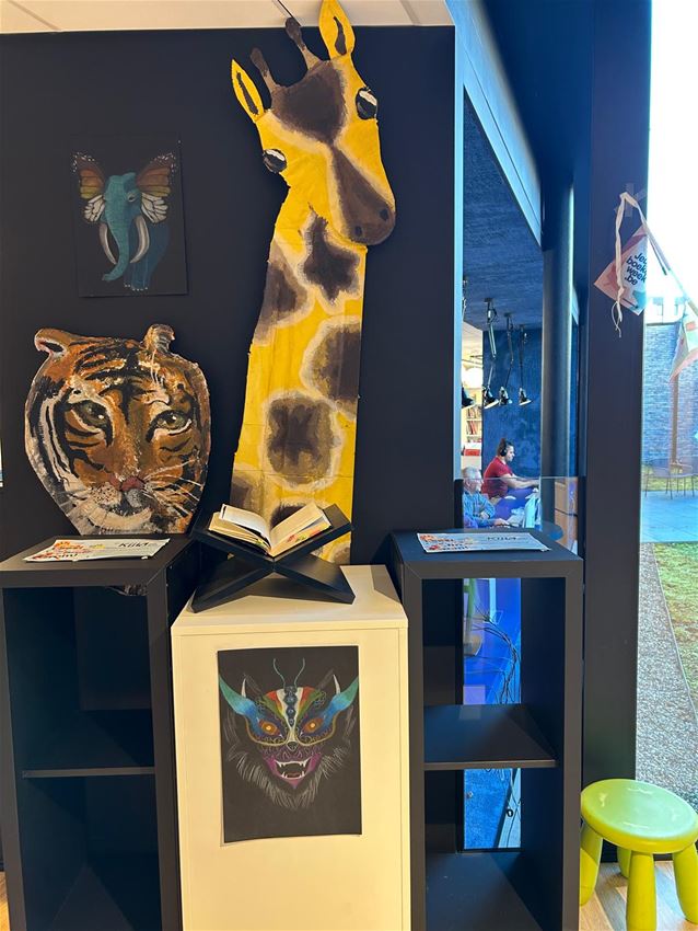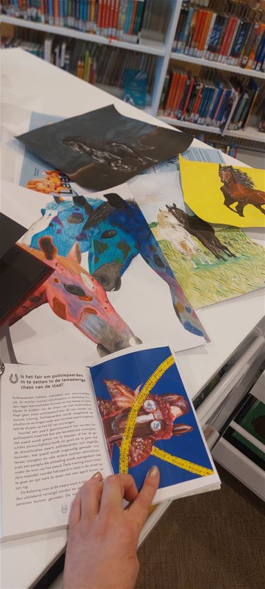 De leerlingen van onze jongerenateliers stellen daarom hun creaties tentoon in deze bibliotheken: